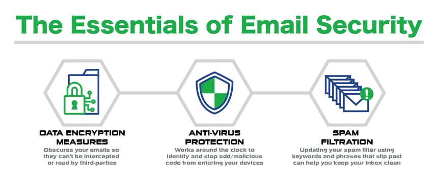 It all comes down to spam. Not only do you need data encryption and a robust anti-virus software, you need an updated spam filter.