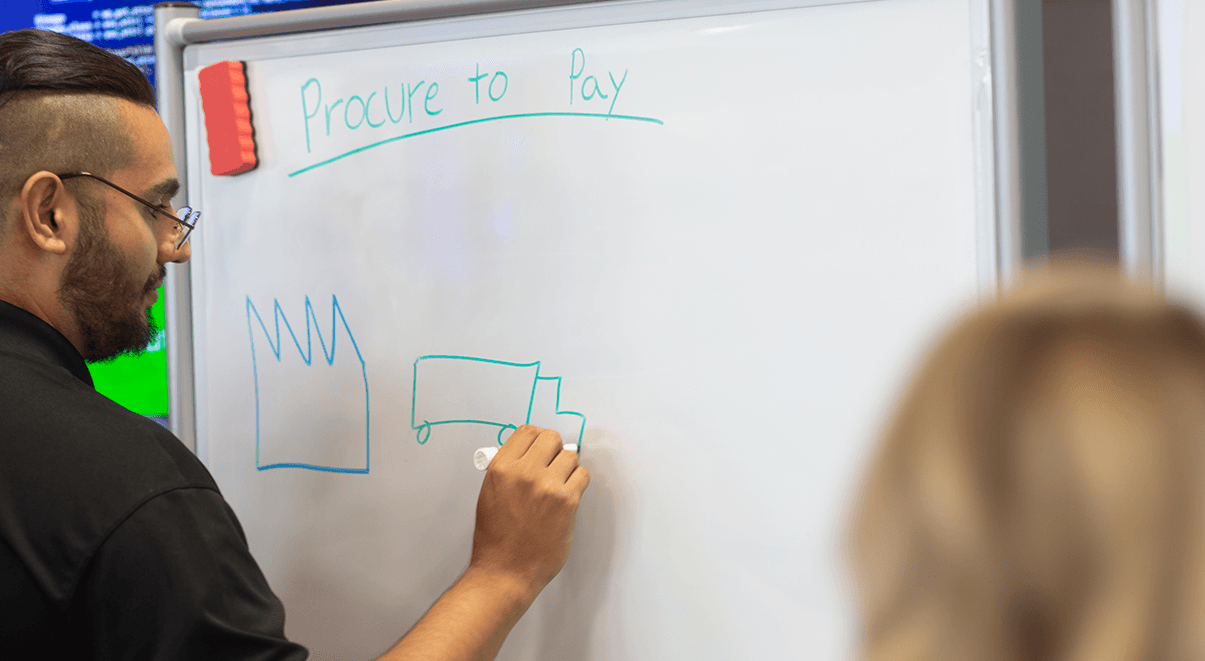 - Involucra a un equipo interfuncional: Considera todos los diferentes departamentos que atraviesa el flujo de valor. Asegúrate de que los expertos en la materia estén involucrados durante todo el ejercicio. Camina juntos por el proceso, mapea el proceso y optimízalo juntos. Los sistemas ERP son sistemas altamente integrados, por lo que este equipo deberá aprender cómo se van a conectar entre sí.